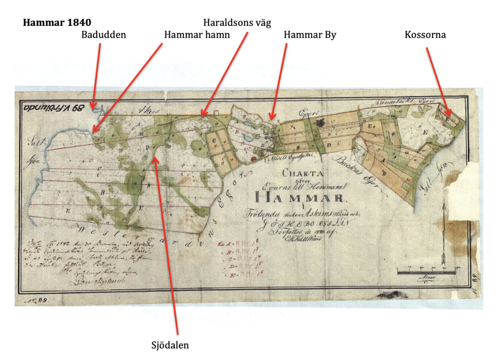 I Hammar skedde laga skifte år 1840. Då flyttades ett antal gårdar bort från den ursprungliga Hammar By vid nuvarande Purpurgången 1-6. Bland annat Torstens gård som fortfarande ligger kvar vid nuvarande minigolfbanan och infarten till Åkeredsvallen. Även de äldre husen på Gredelingatan hörde till Hammar. Den största gården i Hammar, ”Pers i Hammar” brukades ända fram till början av 1960- talet av John Olsson, som troligen gett namn åt ”Johns gata”. Huset ligger idag kvar på Purpurgången 2. Hammars mark sträckte sig vid den tiden från ända från Ganlebukten tvärs över Näsethalvön till Välens naturskyddsområde där kossorna betar idag.